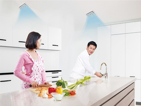 情侶送風(fēng):廚享特設(shè)雙出風(fēng)口,開啟時(shí),兩個(gè)風(fēng)口從不同位置出風(fēng),增加夫妻搭檔烹飪的樂趣。 |